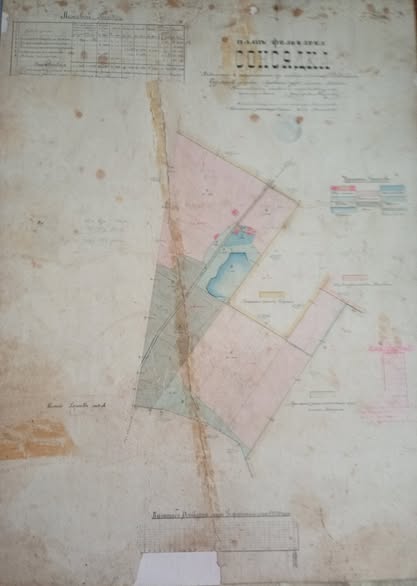 1902 r. plan folwarku Sąsiadka w gminie Łysobyki. Przysiółek Sąsiadka leżał między Poznaniem a Charlejowem i do początku lat 50-tych był w granicach gminy Łysobyki. Obecnie jest to część wsi Poznań w gminie Serokomla.