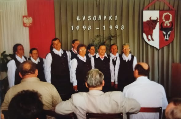 Jeziorzany 1998 r. Obchody 500 -lecia lokacji Jeziorzan. Zdjęcie pierwsze ukazuje uroczystą mszę św. Widoczny krzyż (trzymany przez Stanisława Zielonkę, ówczesnego przewodniczącego Rady Gminy i Jolantę Fotygę, wiece przewodniczącą Rady Gminy) upamiętnia obchody rocznicowe. Na fotografii od lewej ks. Henryk Och, ówczesny proboszcz parafii, ks. Zdzisław Brzoskowski z Jeziorzan. Przed krzyżem przyklęka prezes Stowarzyszenia Jeziorzan, Edward Szabelski. W stroju ludowym członkini zespołu śpiewaczego z Jeziorzan p. Helena Matuszyńska. Na drugiej fotografii panie z zespołu śpiewaczego podczas koncertu. Koncert w wykonaniu: rząd przy ścianie od lewej: Honorata Szabelska, Kazimiera Gałązka, Helena Zdunek, Kazimiera Szabelska; rząd z przodu od lewej: Regina Kurkowska, Genowefa Stańczak, Helena Matuszyńska, Wacława Parzyszek, Helena Szabelska.