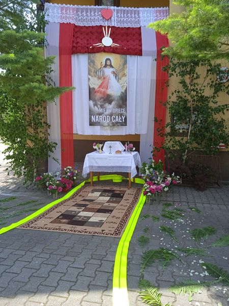 Boże Ciało – kapliczka przy remizie OSP w Jeziorzanach.
