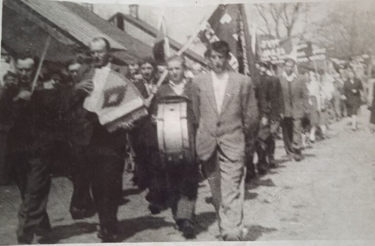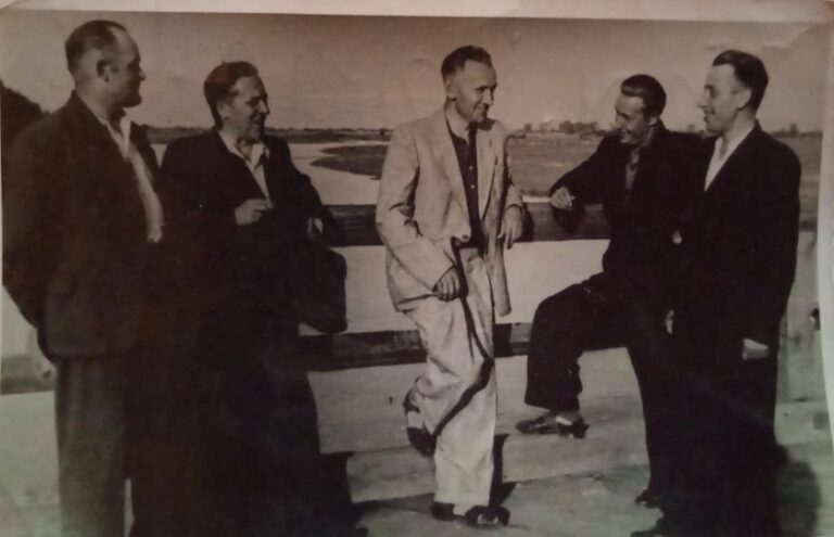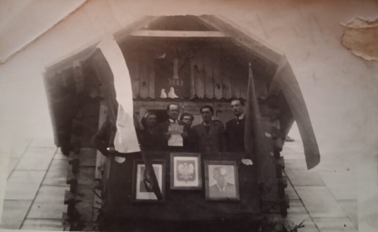 Kopanie torfu na torfowiskach Kazimierza Kuszlla, właściciela majątku w Przytocznie, zgodnie z poniższą umową zawartą pomiędzy Stefanem Grzechnikiem a Kazimierzem Kuszllem właścicielem majątku w Przytocznie. Na pierwszym zdjęciu od lewej: Stefan Grzechnik, Franciszek Mitura, Józef Grabek, osoba nierozpoznana. Na drugim …