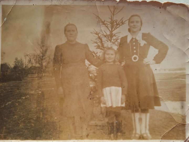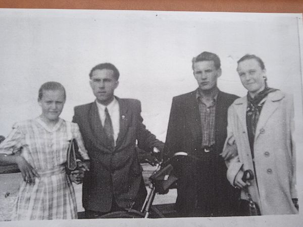 Od lewej: Wacława Parzyszek z domu Szabelska z Łysobyk, Jan Mich z Blizocina, Witold Szabelski – brat Wacławy i ostatnia Zofia z ul. Blizockiej w Łysobykach, nazywali tę rodzinę „Organki” Mężczyzna wojskowy to Jerzy Wójcicki z córką Jolantą. Żoną Jerzego …
