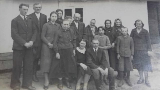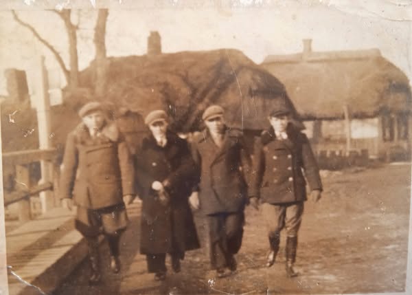 Rok 1940, Drewnik. Młodzież drewnicka. Druga od lewej Genowefa Kuzia. Pierwszy z prawej Jan Lemieszek, drugi z prawej Stefan Kępa