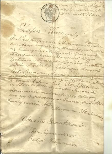Poniżej dokument z 1868r. w oryginale wyszukany w archiwum i przełożony na współczesną polszczyznę przez p. Marka Sosnowskiego. W zapisie pojawia się określenie Krzywiec, współcześnie używa się nazwy Krzywie.