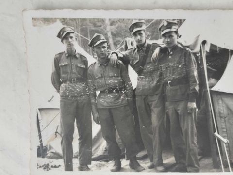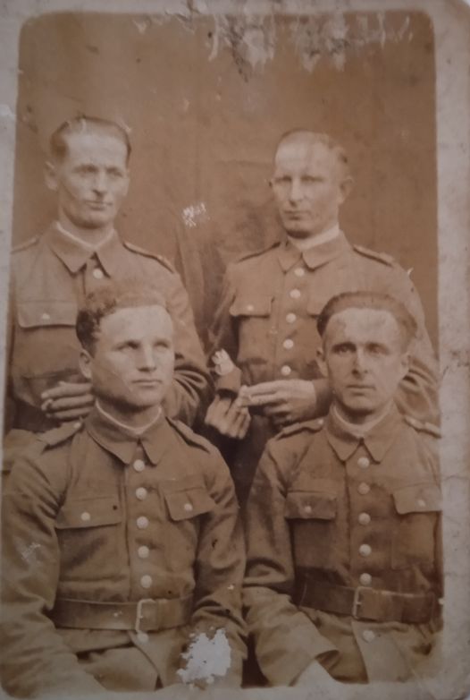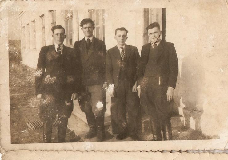 Łączyło ich wiele, m.in. walczyli w szeregach AK. Od lewej: Stefan Tarnowski, Czesław Wernicki ps. „Sokół”, Władysław Tarnowski „Mały”, Jan Broniek „Granit”. Zdjęcie zrobione przed szkołą w Przytocznie między jesienią 1941r. a lipcem 1944r.