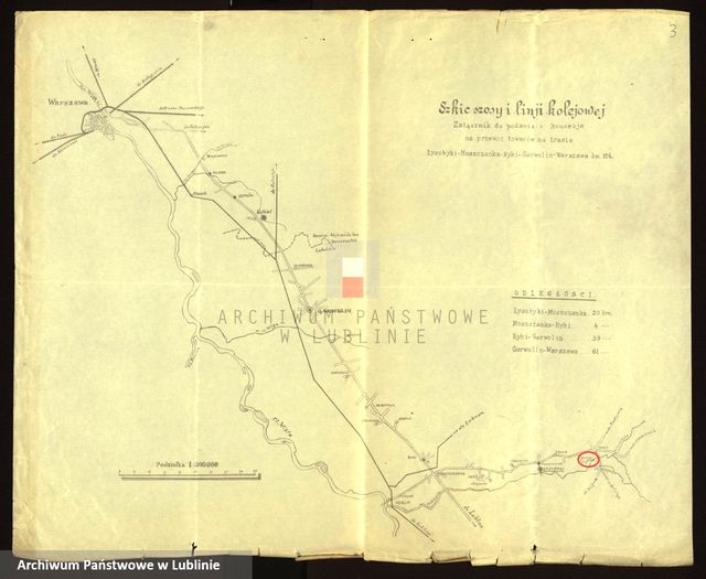 Szkic szosy i linii kolejowej na trasie: Łysobyki – Moszczanka – Ryki – Garwolin – Warszawa. Przypuszczam, że to okres międzywojenny.