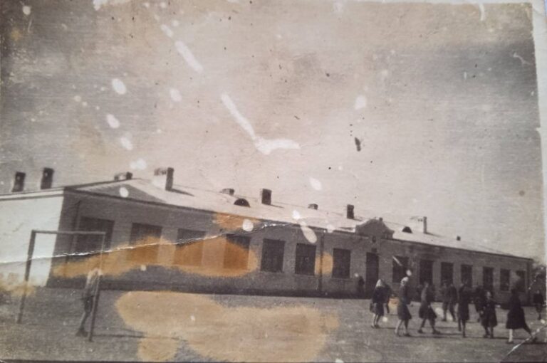 Dawny budynek szkolny w Przytocznie. Myślę, że fotografię wykonano w okresie wojny lub tuż po wojnie. Na zdjęciu albo lekcja wychowania fizycznego, albo zabawy dzieci w czasie przerwy. Autorem zdjęcia jest Stefan Grzechnik, kuzyn p. Stefana Ciołka. Zdjęcie dzięki uprzejmości …