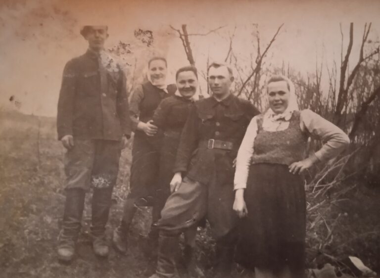 Przytoczno, chyba po wojnie. Pracownicy szkółki drzewek owocowych. Pierwsza kobieta to p. Tarczyńska z Drewnika, matka Janusza Tarczyńskiego. Nie wiem, kim są pozostałe osoby.
