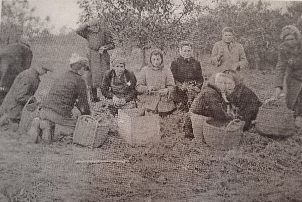 Pierwsze zdjęcie ukazuje dworek w Przytocznie, drugie właściciela majątku Kazimierza Kuszlla (mężczyzna w czapce), na trzecim zdjęciu widnieje pierwszy w okolicy ciągnik, ostatnia fotografia ukazuje kobiety przy wybieraniu ziemniaków.