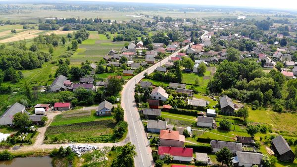 Ulica Warszawska z lotu ptaka. Po wojnie w czasach stalinowskich nosiła nazwę Partyzancka. Zdjęcie pochodzi ze strony „Jeziorzany i Okolice”.