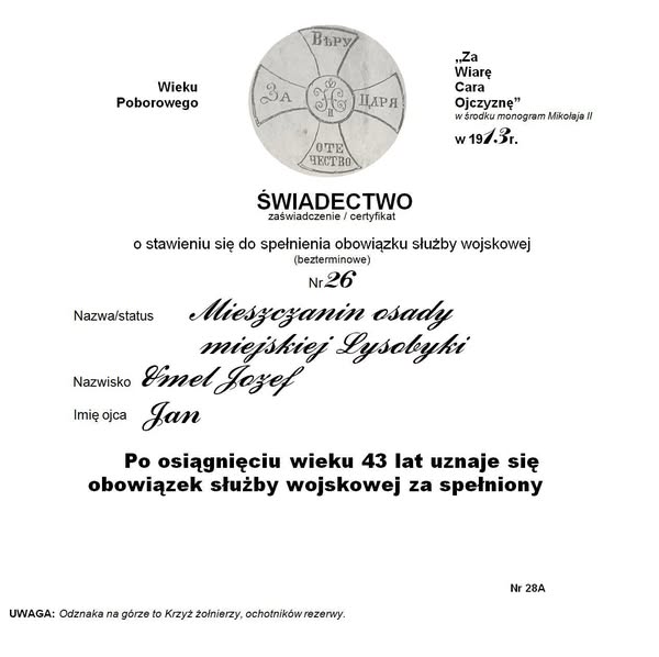Jan Umel z Łysobyk przeniesiony do rezerwy w wojsku carskim. Być może ten sam Jan Umel w latach 1916-1917 był wójtem gminy Łysobyki. Powtórnie urząd ten pełnił w 1924r. i w maju tego samego roku strażacy ze Straży Ogniowej Ochotniczej w Łysobykach wybrali go na członka Zarządu. Zapewne duży wpływ na to miał fakt pełnienia przez niego urzędu wójta. Niestety, nie był aktywnym strażakiem, jak stwierdzono: „Jan Umel mało bierze udziału w życiu organizacji” (a może okazał się już nieprzydatny, kiedy wygasła jego kadencja albo wiek nie pozwalał mu na dużą aktywność), więc rok później skreślono go z listy członków i na jego miejsce wybrano Piotra Jastrzębskiego.