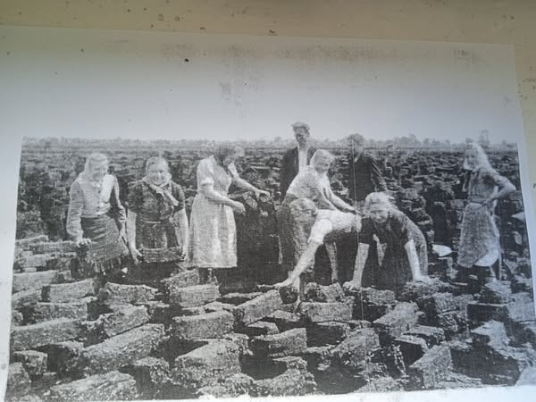 Dziś święto górników. W gminie Łysobyki „górnicy” kopali torf. Ludność była zbyt biedna, by kupić węgiel, więc latem kopano torf, następnie układano go w tzw. koziołki i suszono na słońcu. Wysuszony zwożono do zagród i palono w nim, ogrzewając domy. Pierwsze zdjęcie ukazuje kopanie torfu i tym zajmowali się mężczyźni, zaś drugie układanie torfu do suszenia, to była praca dla kobiet.