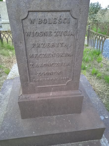 W boleści wiosnę życia przebyta męczeńskim zakończona zgonem 5 sierpnia 1858