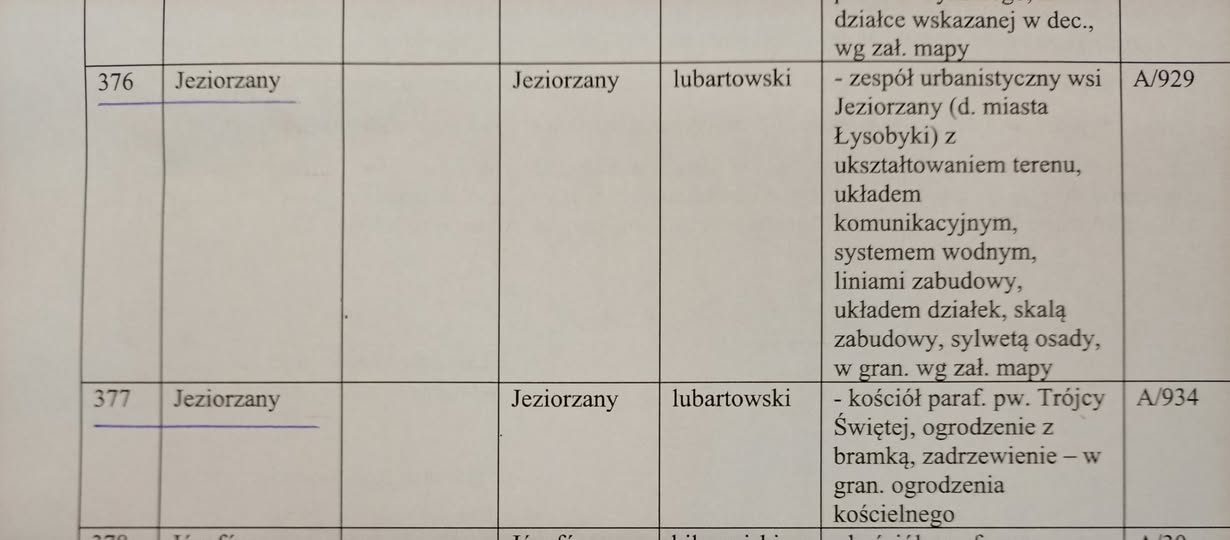 Lubelski Wojewódzki Konserwator Zabytków wydał obwieszczenie nr 1/2024 w sprawie wykazu zabytków wpisanych do rejestru zabytków nieruchomych województwa lubelskiego i do rejestru zabytków archeologicznych województwa lubelskiego. Obwieszczenie zamieszczono 8 lutego 2024 r. w Dzienniku Urzędowym Województwa Lubelskiego. W przedstawionym na zdjęciu wykazie znalazły się dwa obiekty w Jeziorzanach pod nr: 376 i 377 wykazane jako zabytki nieruchome.