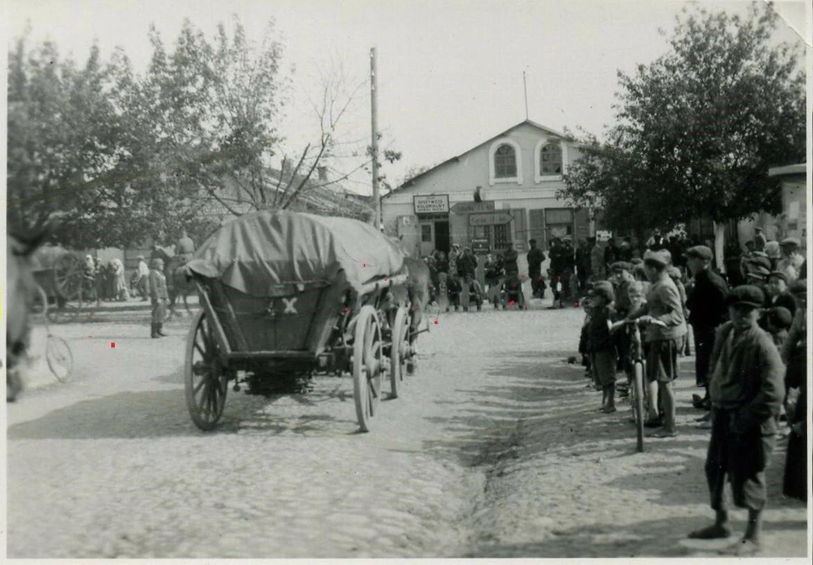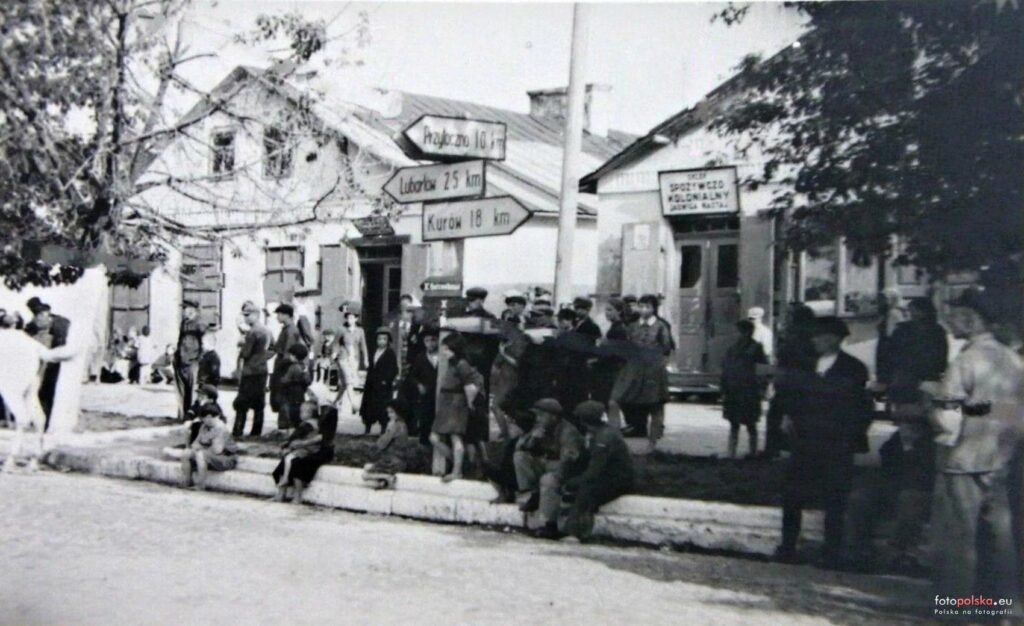 Michów. Pierwsze zdjęcie z 1939r. ukazuje wjazd wojsk niemieckich do Michowa. Druga fotografia pochodzi z 1941r., to była środa – dzień targowy. Fotografie wykonano w Rynku.