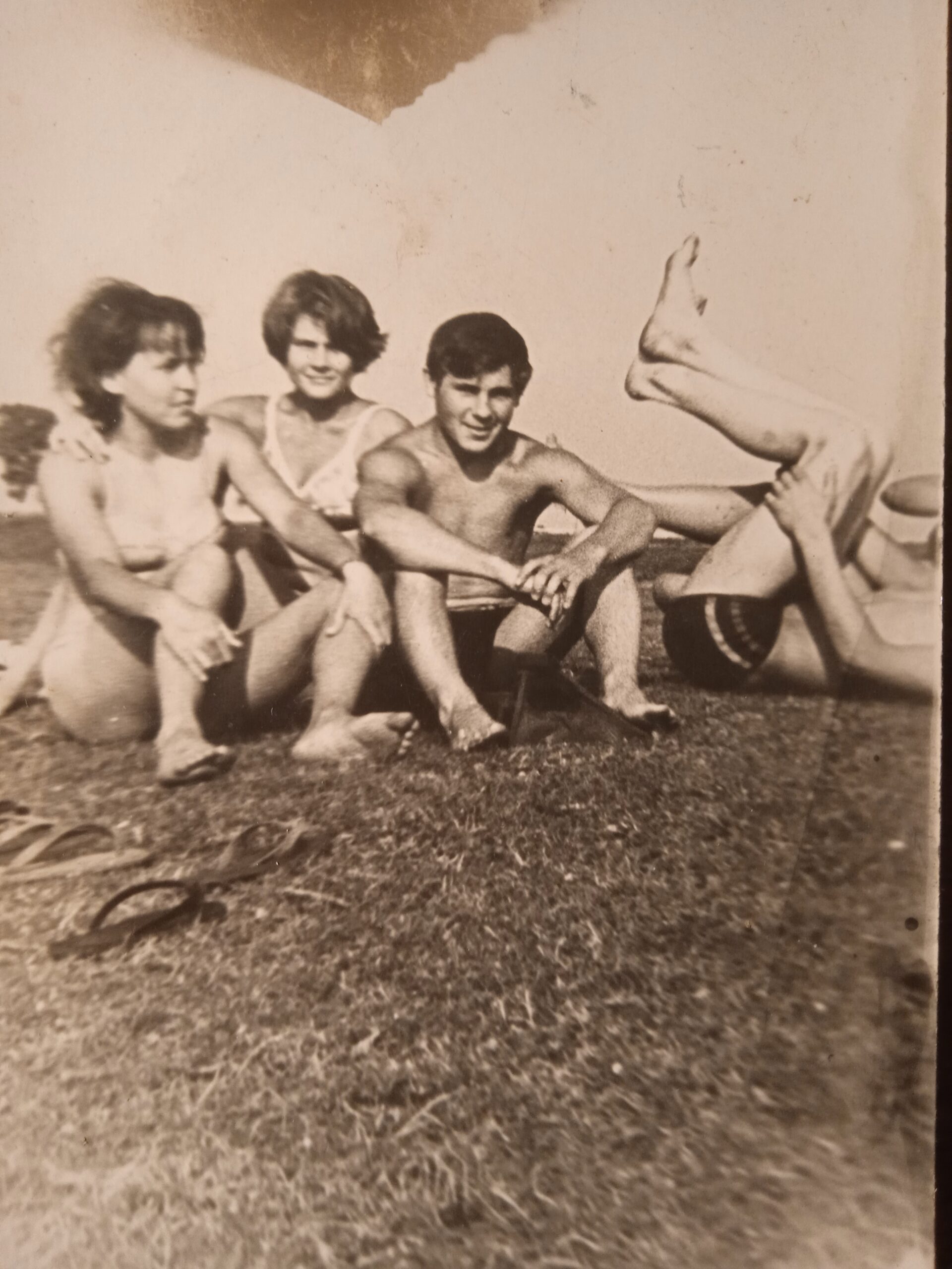 Ponownie zdjęcie młodzieży znad Wieprza, ale tym razem chyba lata 60-te. Kobieta w środku to prawdopodobnie Teodora Gremplewska, znana jako Dorka. Widoczny mężczyzna to chyba Janek Mazurek. Nie wiem, kim są pozostałe osoby.