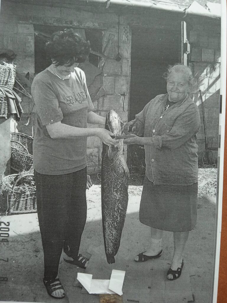 Pani Wacława Parzyszek z córką Teresą. Sum warzył 20 kg.