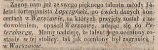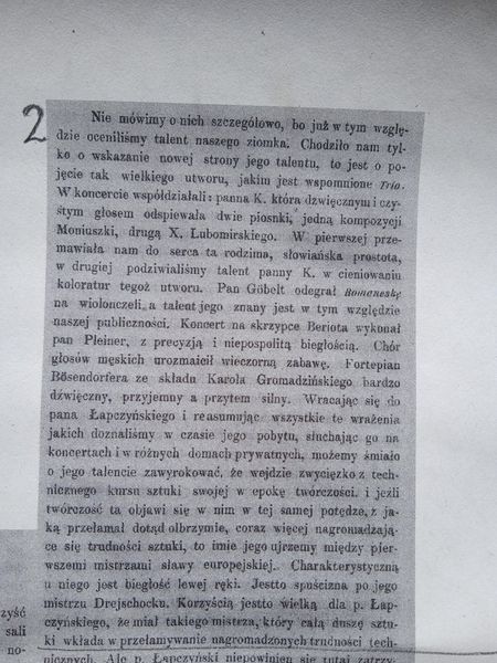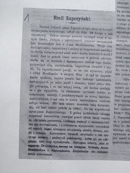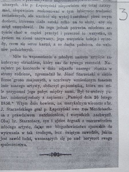 Artykuł poświęcony Łapczyńskiemu zamieszczony w „Ruchu Muzycznym” w 1858r.. Materiał pochodzi ze strony Gułów i Okolice.
