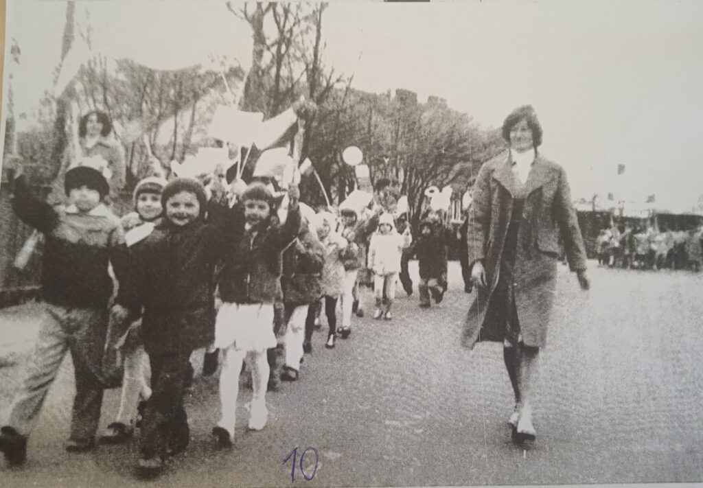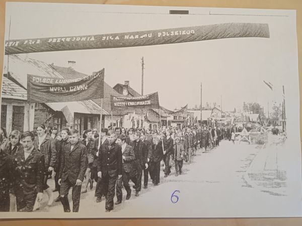 Lata 50-te. Pochód na ulicy Kościelnej.
