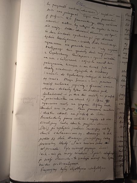 W niedzielę przyjmowałem obiadem porucznika i podporucznika. Ten ostatni pochodził z Żelechowa, nazywał się Adamczewski. Matkę jego znałem – była bardzo porządna Niemka – uczyła przez jakiś czas w gimnazjum w Żelechowie. Po obiedzie zagraliśmy w brydża – ale zrobiliśmy tylko jednego robra, bo przyszedł rozkaz (…?) i wojskowi musieli nas pożegnać. Tegoż dnia poznałem p. profesora U. W. [Uniwersytetu Warszawskiego ] Jaworowskiego, który usiłował namówić doktora, by wstąpił do wojska – bo lekarza nie mają. Doktór odmówił, tłumacząc się tym, że bez środków opatrunkowych jego obecność będzie bezużyteczna – zresztą słaba konstrukcja organiczna nie pozwala mu na trudy wojenne.