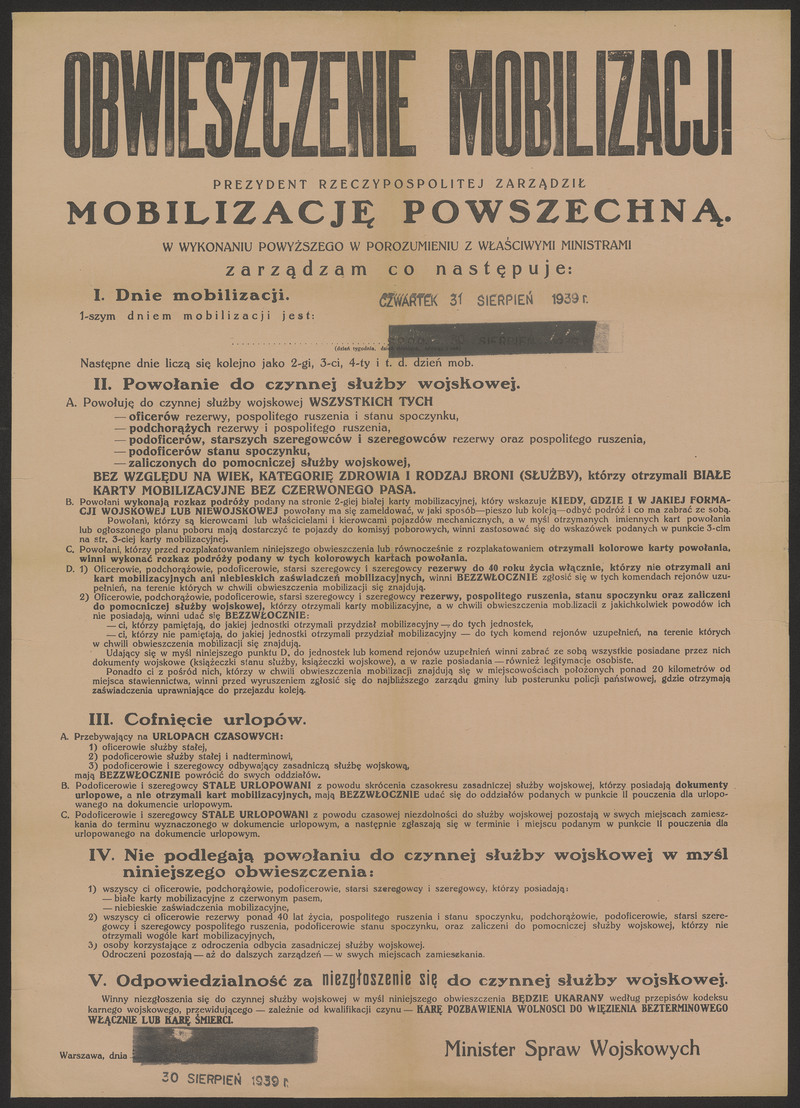 5 – zmechanizowanie administracji wojskowej i cywilnej. Wszędzie czekano rozkazów, a wobec braku łączności i zmienionej sytuacji ślepo wykonywano ustalone kanony stanu wojennego. Policja uciekła pierwsza, bo tak było w tajnych instrukcjach napisane, że jak będą mosty wyrzucać, to ma uciekać, a wyrzucono mosty niekiedy na tydzień a nawet na dwa przed przyjściem Niemców. W Łysobykach policja wyjechała 11-go – mosty wyrzucono 19-go – a Niemcy przybyli 21 września, bo wystarczył tylko zamiar, pogłoska, a już policji nie było. Przez 10 dni byliśmy bez policji. Dobry czas i okoliczności dla elementów przestępczych, szpiegów, kolonistów niemieckich, nad którymi nie było żadnej opieki.