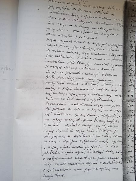 Ja osobiście nie miałem żadnych przykrości od Niemców. Dwa razy nocowałem – raz musiałem dać zjeść, ale zachowywali się bez zarzutu. W ogóle parafia moja nie można narzekać. Trochę kontyngentu w zbożu i (…?) rozumie się w mocno zmniejszonej ilości – i więcej nic.