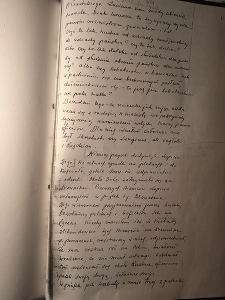 Wszystkie te minusy naszego społeczeństwa znalazły swój wyraz w kazaniach moich na ambonie – gdzie nie licząc się z niczem, beształem i tłomaczyłem. Dla podtrzymania ducha śpiewałem „Boże coś Polskę” do lutego – choć narażałem się na represje niemieckie.