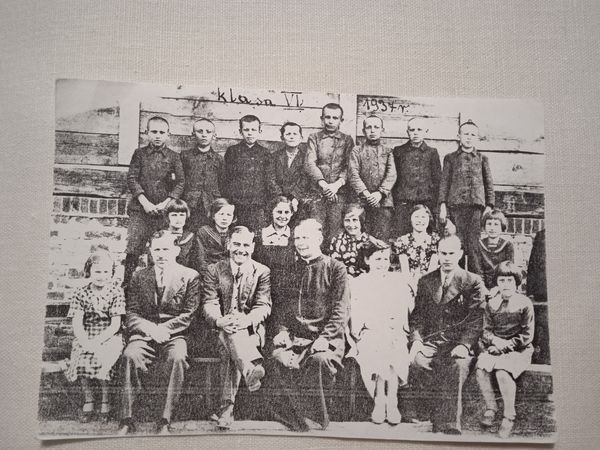 Łysobyki (obecnie Jeziorzany). Dolny rząd od lewej nauczyciele, o których pisze ks. Kazimierczak pod datą wrzesień 1939r: Andrzejewski, Rosolski, ks. Kazimierczak i ostatni Deputat.