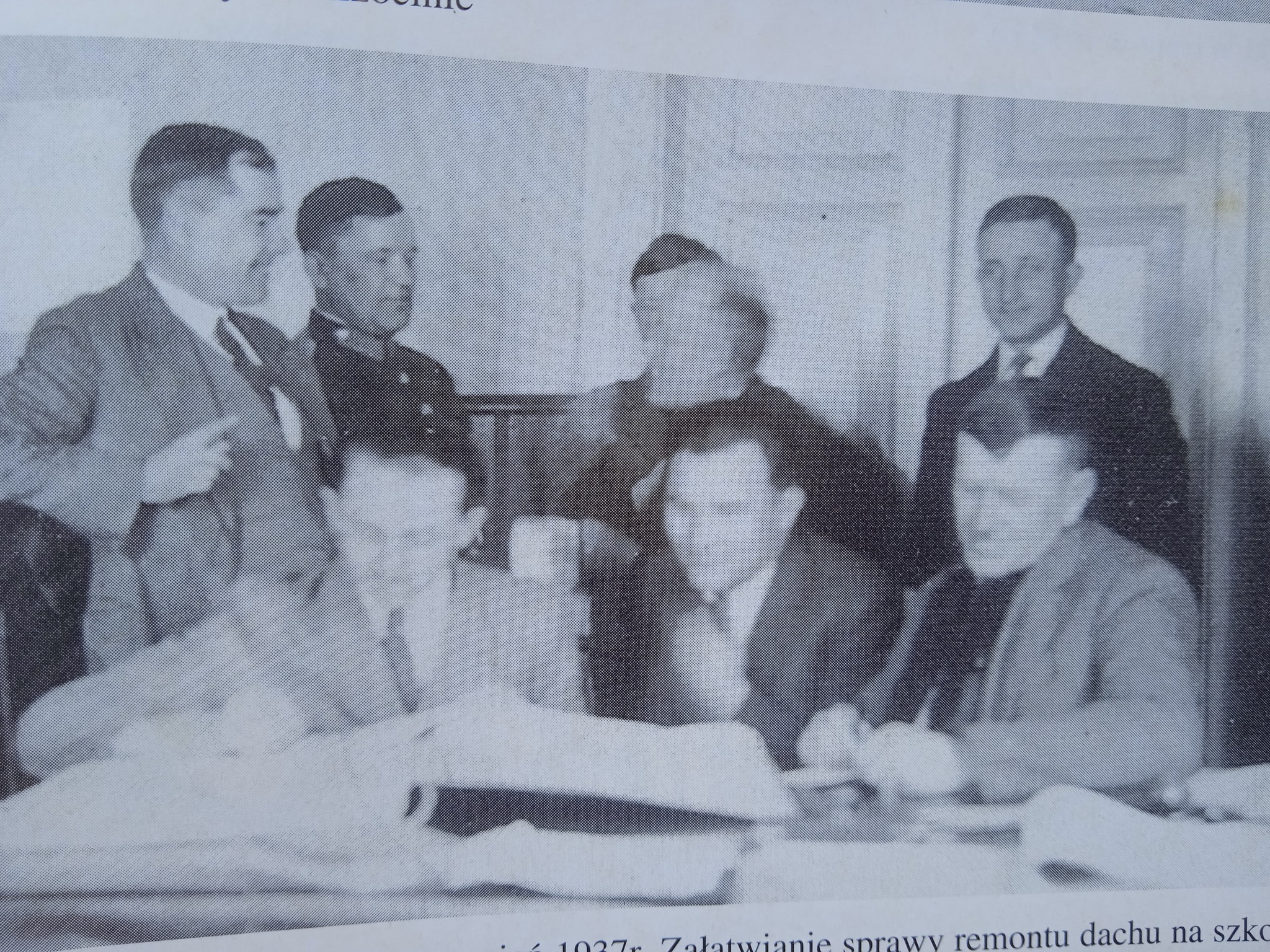 Łysobyki (obecnie Jeziorzany) W mundurze komendant policji Szałas. W górnym rzędzie drugi od prawej sekretarz gminy Ludwik Protasiewicz – rozmawia z Rosolskim i Szałasem. O Protasiewiczu i Szałasie ks. Kazimierczak wspomina pod datą wrzesień 1939r.