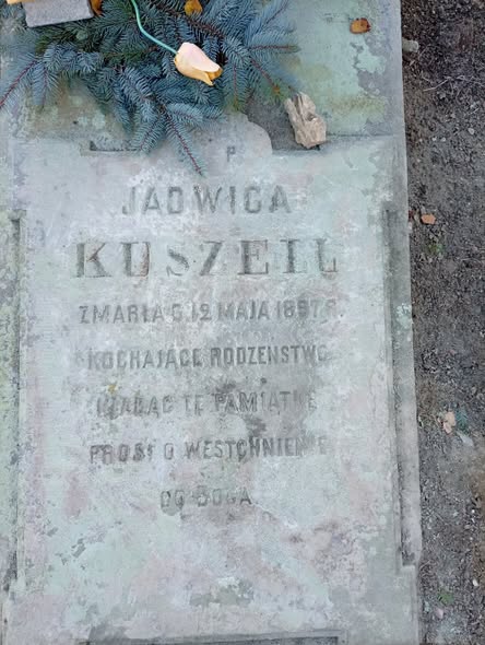 Na miejscowym cmentarzu spoczywa także córka Ignacego i Walentyny – Jadwiga Kuszell, ur. 1864r. Zmarła w wieku 33 lat w 12 maja 1897r. Jej zgon zgłosili w kancelarii parafialnej kucharz Edward Rogowski i sadownik Mateusz Krzymiński. Nie założyła rodziny, zmarła jako panna. Z inskrypcji nagrobnej wiadomo, iż pomnik ufundowało rodzeństwo.