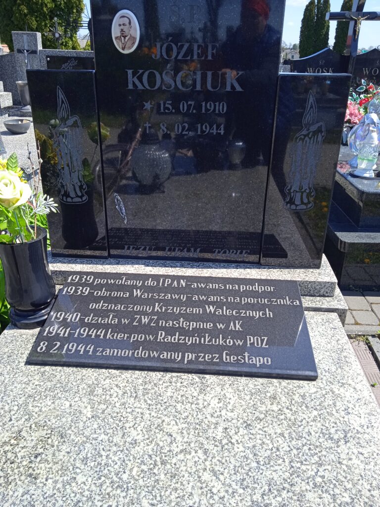 Cmentarz w Przytocznie, parafia Jeziorzany. Nagrobek Józefa Kościuka, rządcy majątku rodziny Kuszell w Przytocznie.