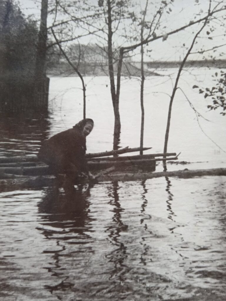 Moniska to dzielnica Łysobyk/Jeziorzan. Do końca lat 70-tych, aby w okresie roztopów wiosennych lub w czasie intensywnych opadów dostać się do domu, należało mieć łódź, tzw. krypę. Nie było widocznej dzisiaj wałodrogi pokrytej nawierzchnią asfaltową, po której obecnie bezpiecznie można się przemieszczać. Niemalże na każdym widocznym zdjęciu widać krypę, ówcześnie niezastąpiony środek transportu. Jedno z dawnych zdjęć ukazuje kobietę, która coś płucze w wodzie, która weszła niemal na podwórko. Dla kontrastu zamieściłam współczesne zdjęcie tego samego miejsca.