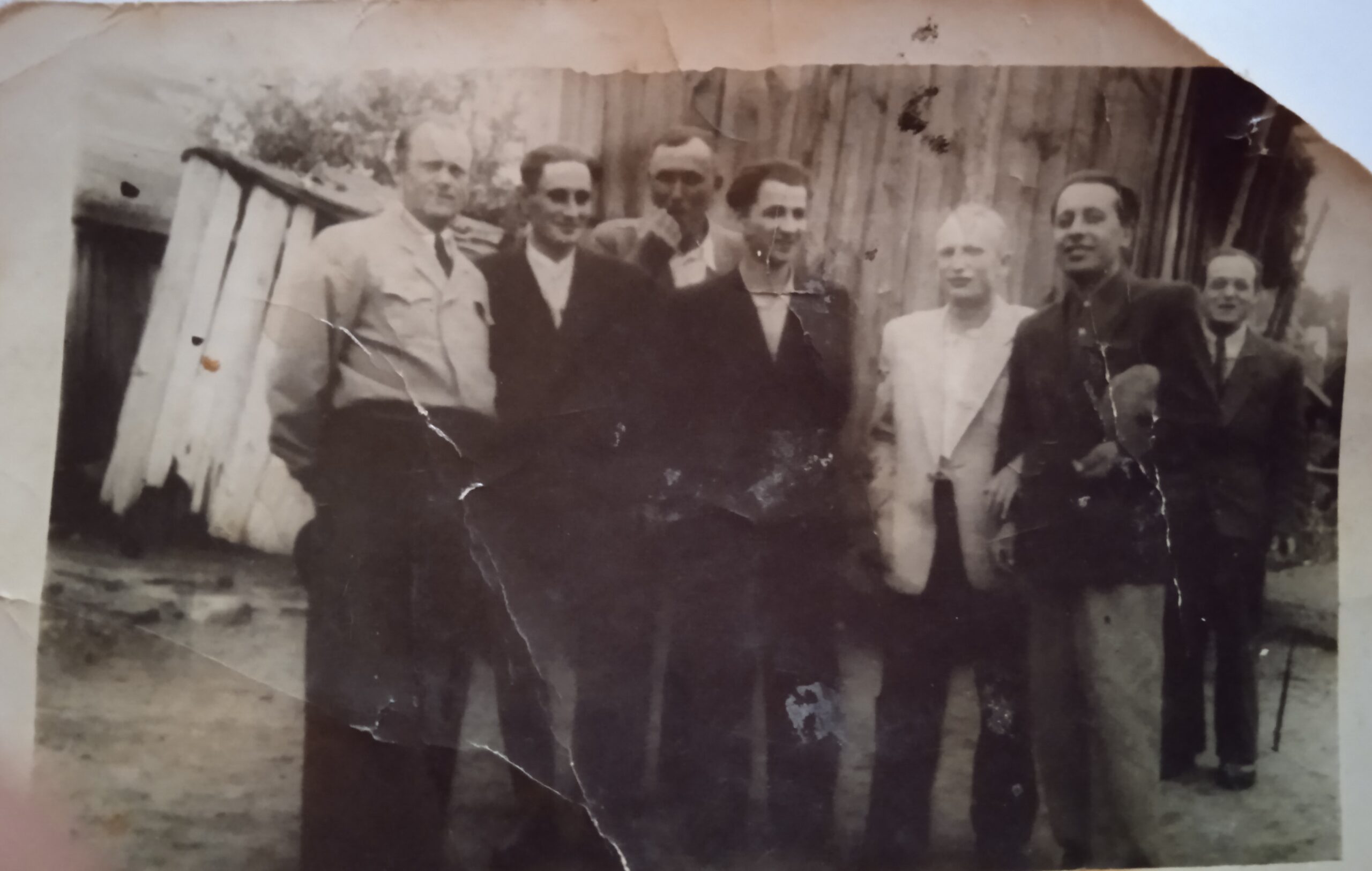 Gdzieś w Łysobykach. Na pierwszym planie Zarząd GS. Od prawej lekko z tyłu Jan Szabelski Kacapek z Jeziornej, pracował jako piekarz, Alikowski z Budzynia, Lucjan Sikorski z Budzynia, Kielmas Wacław z Przytoczna. Od lewej Bolesław Mierzwiński z Przytoczna. Pozostałe osoby nierozpoznane. Myślę, że zdjęcie z przełomu lat 50-tych i 60-tych