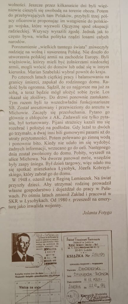 Poniższe biogramy pochodzą z wydawnictwa okolicznościowego „Oddali życie za Polskę. Noty biograficzne nauczycieli zamordowanych podczas II wojny światowej” wydanego przez Związek Nauczycielstwa Polskiego. Noty opracowali nauczycieli nauczyciele Szkoły Podstawowej w Przytocznie. Artykuł J. Fotygi „Marian Szabelski – więzień obozów koncentracyjnych” pochodzi z czasopisma „Panorama Gminy Jeziorzany”, czerwiec 1997r.