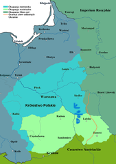 W sierpniu 1915r. z gminy Łysobyki i innych ościennych gmin wycofały się wojska rosyjskie. Ich miejsce zajęli legioniści polscy oraz wojska austro-węgierskie i niemieckie. Po całkowitym wycofaniu się Rosjan z Królestwa Polskiego Niemcy i Austro-Węgry podzieliły ten obszar na dwie strefy okupacyjne. Część północną ze stolicą w Warszawie (na mapce teren oznaczony kolorem niebieskim) zajęli Niemcy i utworzyli Generalne Gubernatorstwo Warszawskie, zaś w części południowej ze stolicą w Lublinie Austro-Węgry utworzyły Generalne Gubernatorstwo Lubelskie( na mapce kolor jasnozielony) . Łysobyki i inne miejscowości po tej stronie Wieprza były pod okupacją niemiecką, zaś Drewnik, Węgielce Michów i inne znalazły się w strefie okupacyjnej austro-węgierskiej. Granica między tymi strefami częściowo przebiegała rzeką Wieprz. Z tego okresu zachował się w archiwum rodzinnym jednej z rodzin w Jeziorzanach dokument wydany przez lekarza powiatu Łukowskiego.