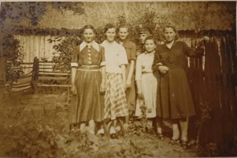 Te dziewczyny to matki dzieci dzisiaj już 60+. Pierwsza z lewej to Gunda Cyrankowa z d. Szczupaczyńska. Druga od lewej w spódnicy w kratkę to Maria Szabelska (Szabelska z domu i po mężu), zwana Draganicha, trzecia to Józefa Wolińska po mężu Sikorska. Pierwsza z prawej jest podobna do córki Czesława Szabelskiego ”Sympatycznego” z ul. Ogrodowej, miała męża z Drewnika – Kuzię. Maria Szabelska i Józefa Wolińska były koleżankami przez całe życie. Jeszcze 50 lat temu Wanda – córka p. Marii, p. Maria, p. Józefa i inne chodziły na tzw. „gazety”, czyli wspólne czytanie prasy. Często te „gazety’ odbywały się w domu rodzinnym p. Marii, na Budzyniu (dzisiaj ul Warszawska w Jeziorzanach), u Szabelskich zwanych Dragany.