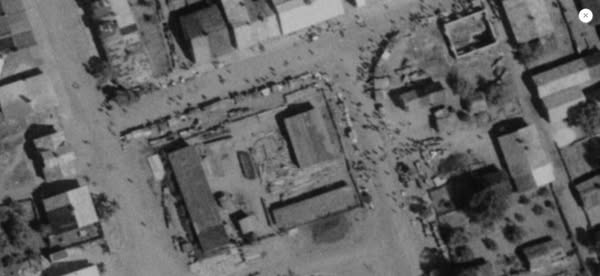 1957r. zdjęcia lotnicze Łysobyk. Na pierwszej fotografii róg ulicy Rynek i Kościelnej. Zdjęcie wykonano najpewniej podczas odpustu, gdyż widać stragany sprzedających. W miejscu, gdzie obecnie stoi budynek urzędu gminy i baru oraz pawilon handlowy i sklep spożywczy GS, widać kamieniczki pożydowskie. Na drugim zdjęciu w centralnej części dzisiejszy skwer. Wtedy stały w tym miejscu baraki robotników budujących most na Wieprzu. W miejscu obecnego ośrodka zdrowia również widać zabudowania pożydowskie.