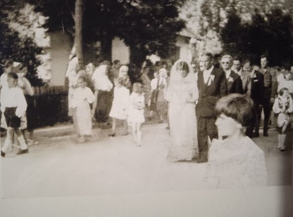 Na pierwszym zdjęciu wesele Heleny Kępy (tę rodzinę Kępów nazywano Gajkami) z ulicy Ogrodowej. Myślę, ze to koniec lat 50-tych może początek lat 60-tych Obecnie jest to posesja rodziny Wasilewskich, domu już nie ma. Pozostałe trzy zdjęcia ukazują ślub moich rodziców, Na drugiej fotografii w drodze do kościoła, na trzeciej powrót z kościoła. Czwarte zdjęcie przed moim domem rodzinnym. Czerwiec 1962r.