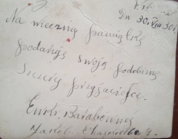 Zdjęcie z dedykacją ze zbiorów pewnej rodziny w Jeziorzanach.