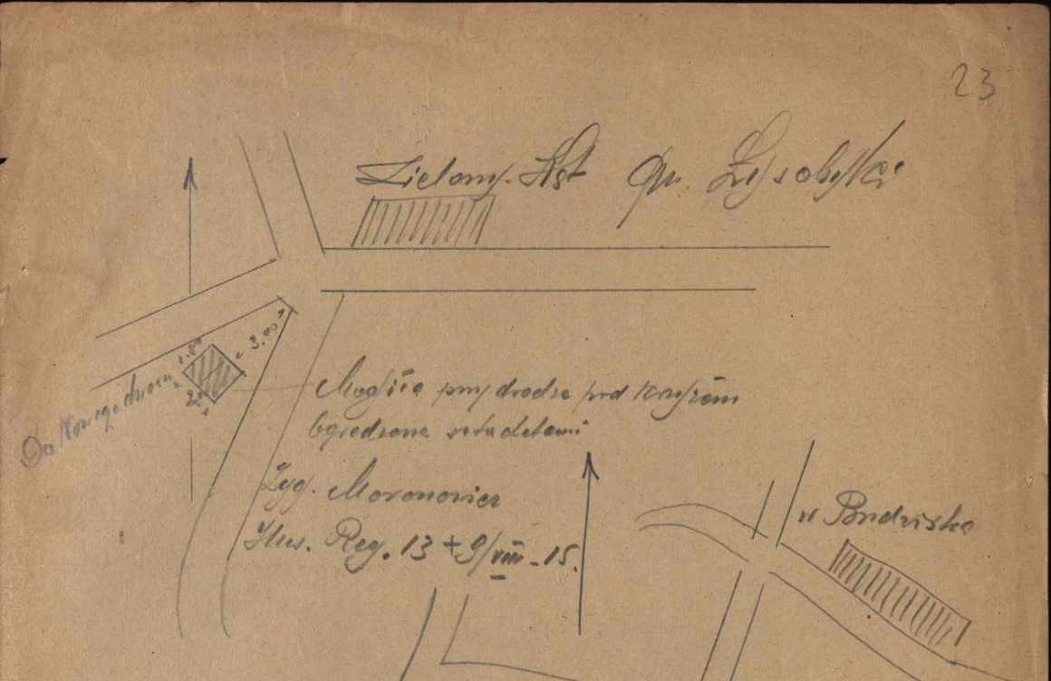 Trwała pierwsza wojna światowa. 9 sierpnia 1915r. I Brygada Legionów Polskich pod dowództwem J. Piłsudskiego wraz z wojskami austriackimi wkroczyła na teren gminy Łysobyki po pośpiesznie wyremontowanym moście na Wieprzu w Łysobykach. Most ten wycofujący się Rosjanie podpalili, na szczęście nie spłonął cały, był częściowo uszkodzony. Wojsko polskie i austriackie nacierało na wycofujących się Rosjan w kierunku północnym, czyli np. na Krzówkę, Budziska, Ferdynandów, Zielony Kąt i na wschód, np. Krępa, Poizdów, Serokomla. W czasie natarcia do wsi wjechał koń z nieżywym żołnierzem austriackim, a być może Polakiem w służbie austriackiej na co wskazywałoby nazwisko, noga nieboszczyka zaplątała się w strzemię. Przypuszczalnie trafiony został przez rosyjskiego strzelca wyborowego. Zabity żołnierz to Zygmunt Moronowicz, służył w Husarii Regiment 13. Poległ 9 VIII 1915 r.