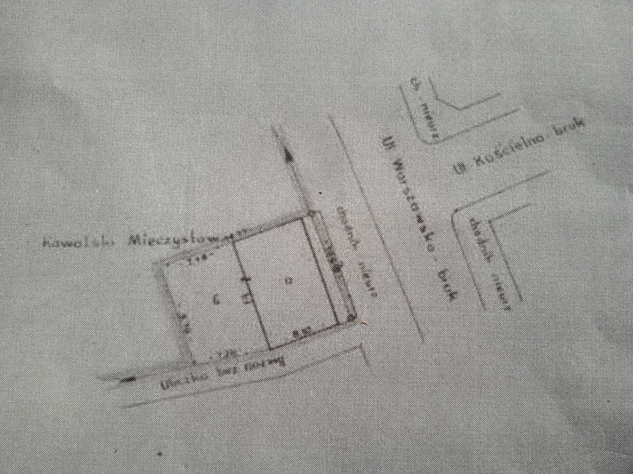 Patrząc na mapkę, czytelnik dostrzeże, iż w sąsiedztwie opisywanego budynku widnieje działka należąca do Mieczysława Kowalskiego. Na tej bardzo wąskiej działce stał niepozorny dom typu wagonówka należący przed wojną i tuż po wojnie do rodziców Mieczysława – Katarzyny i Jana Kowalskich. Według relacji dom ten od sąsiedniego oddalony był o ok. 1 m, dlatego wejście, rodzaj podwórka, było bardzo wąskie. Budynek spłonął w 1954 lub 1956r., zapalił się od piekarni, do której przylegał. Kowalską nazywano „Gruba Kaśka”, trudniła się ona wyrobem i sprzedażą wędlin. Z relacji zebranych w latach 90-tych mówiono mi, że prowadziła też gospodę. Jej mąż grał na trąbce lub kornecie. Po śmierci męża (zmarł w drodze do Warszawy) ponownie wyszła za mąż za Latka. Ślub brali zimą, w bardzo mroźny dzień. Mróz był tak tęgi, że ponoć gasły świece. Opowiedziano mi zabawną anegdotę jak to syn Mieczysław Kowalski pojechał wozem kupić prosiaka na wyroby: „Mietek z dwoma innymi wozem zaprzężonym w konia pojechali kupić wieprzka. Nie było ich jeden dzień, drugi, trzeci…. W końcu wrócili bez konia wozu i wieprzka”